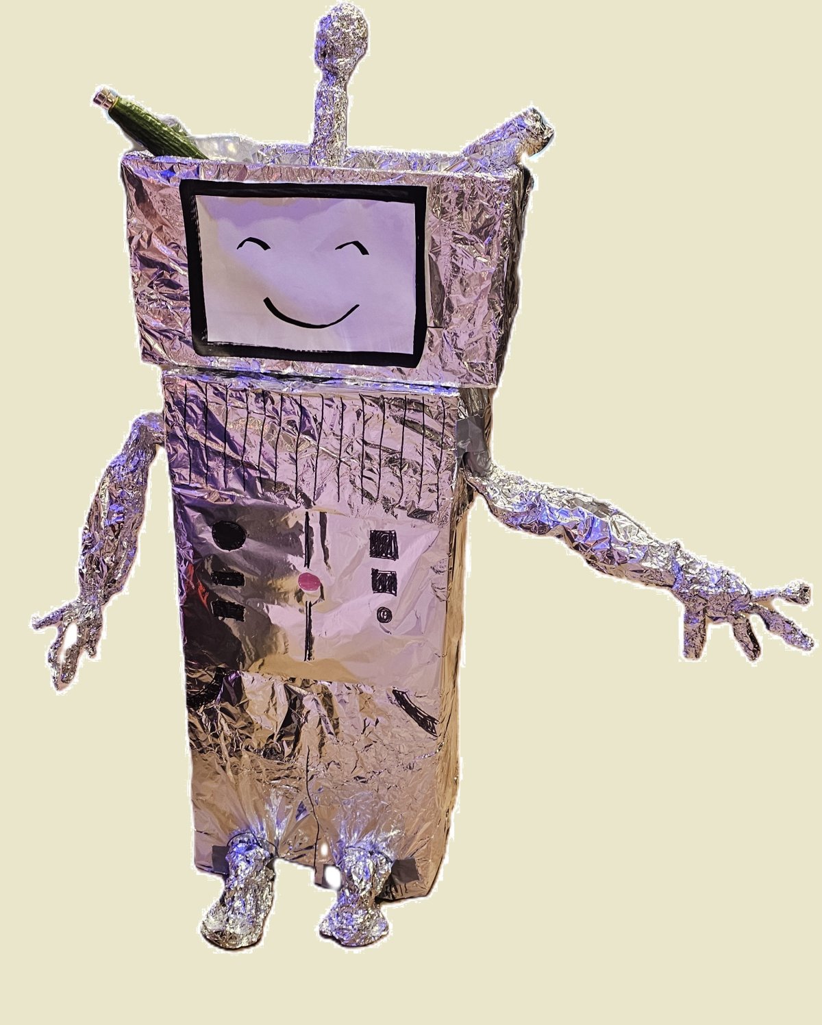 Gjennom musikk og sketsjer dro vi på tidsreise og lagde en godterirobot.