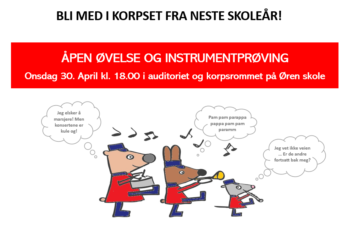 Har du allerede bestemt deg for å bli med i korpset fra høsten 2025? Ta kontakt med oss allerede nå, så kan vi hjelpe deg med å få plass i instrument-opplæringstime i Kulturskolen.