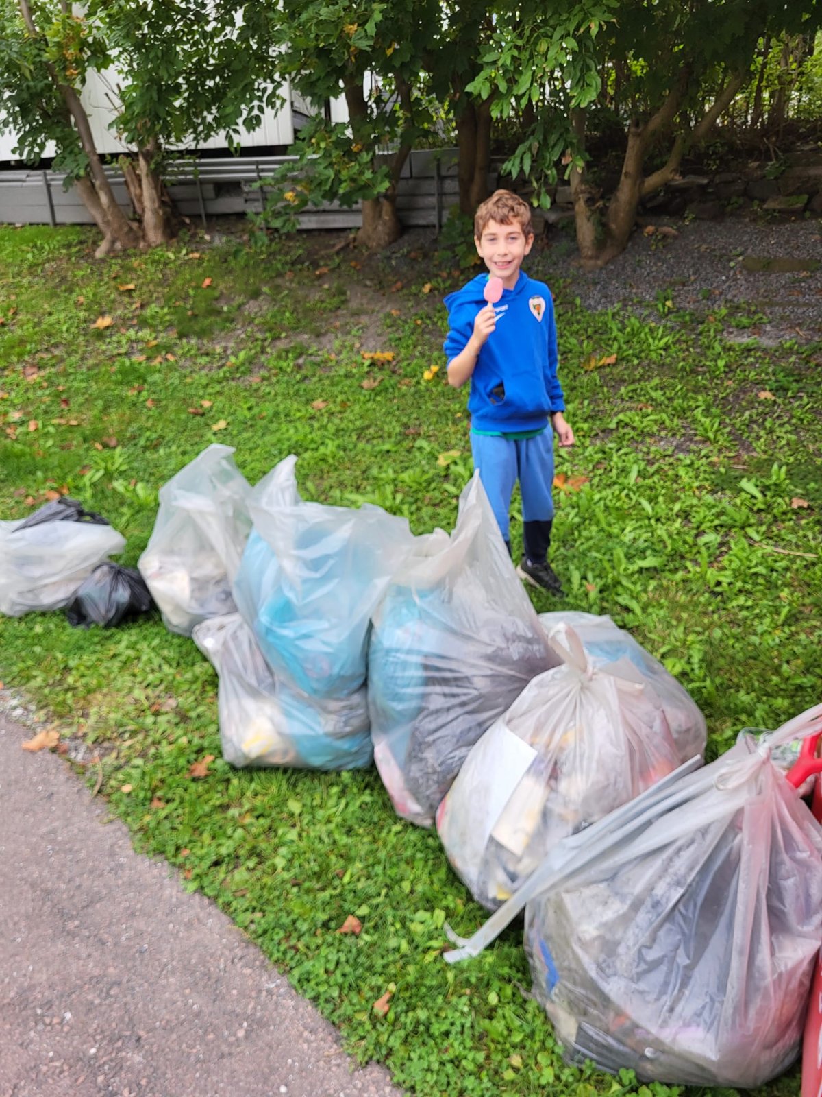 ... hvor vi plukket 60 kg søppel godt sortert og levert til gjenvinningsstasjon, mens vi tjente mye penger til korpset (og spiste is og hadde det gøy sammen! 🙂)